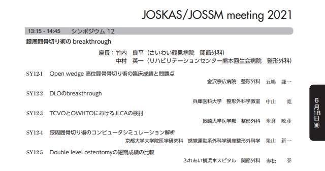 2021年6月18日 / 最終更新日時 : 2021年6月23日 Akamatsu ブログ 第13回日本関節鏡・膝・スポーツ整形外科学会 シンポジウム シンポジウム12膝周囲骨切り術のbreakthroughで発表と討論がありました。緊急事態宣言で現地での学会はなくなり、初めてのWebでの発表と討論になりました。私の持ち時間は16分でしたが、最後の演者でしたので私の発表開始の時点で残り14分しかなく、10分あるはずの総合討論は2分でした。今後、改善が必要と感じました。貴重な機会をいただきありがとうございました。 Follow me! FacebookBlueskyCopy